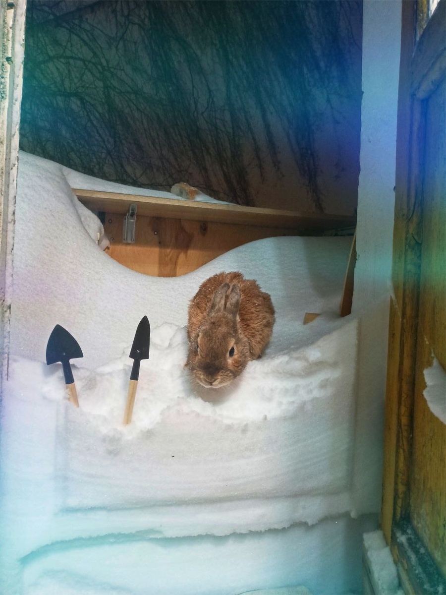 Во многих регионах снег выпал только на прошлой неделе, а где-то он, конечно, лежит уже давно. Многих интересует вопрос - можно ли гулять с кроликом зимой. Вопрос выгула кролика на улице мы уже обсуждали В зимний период, когда бывают комфортные условия, кажется, что и ушастику может быть интересно изучить снег. Однако, стоит понимать, что минимальная комфортная температура для декоративного кролика +16 градусов, как правило, зимой в наших квартирах +20+25, а потому вынос кролика на улицу, даже, если там -1-3 это абсолютный температурный шок. У кроликов чрезвычайно чувствительная дыхательная система, а потому такой резкий перепад гарантированно вызовет у кролика пневмонию, которая почти всегда летальна для пушистиков. Даже, если нам кажется, что на улице почти нет ветра, для кролика этот легкий морозный ветерок может оказаться таким же смертельно опасным. Для кролика это ледяной сквозняк. В городе снег может содержать частички противогололедных реагентов, которые, если попадут в орг