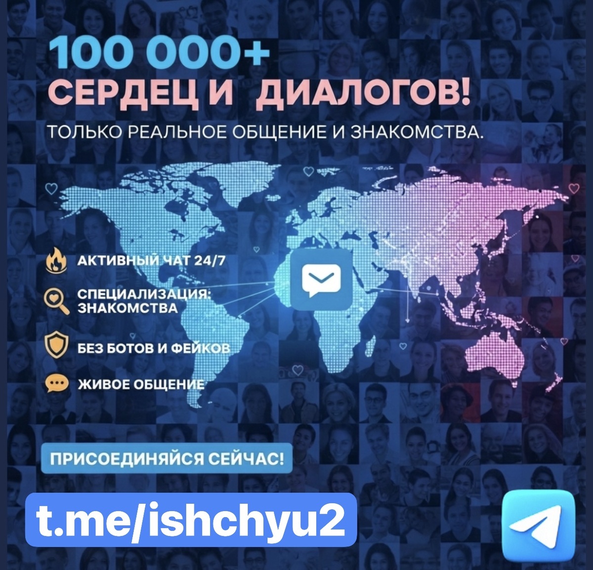 100 000+ пользователей и миллионы сообщений! 💬 Ищете место для адекватных знакомств и интересного общения? Вы его нашли. Мы создали самый крупный и активный чат в Telegram для тех, кто ценит живой диалог. • Никаких анкет: просто заходи и общайся. • Специализация: только знакомства и поиск своих. • Безопасность: чистим чат от спама и негатива. Присоединяйся к самому масштабному комьюнити в ТГ! 🔗 Ссылка на вход: t.me/ishchyu2