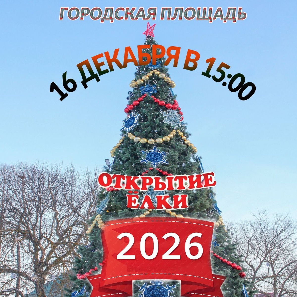 16 декабря в 15:00 на городской площади состоится открытие новогодней ёлки - 2026