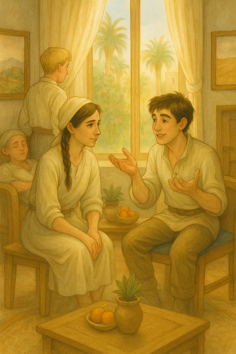 Дорога под палящим солнцем оказалась на удивление трудной. Ребята привыкли, что от полуденного жара их спасает чудесная одежда из эхоранского льна, однако придя в Сарду они оставили ее в гостиничных номерах. Путникам ничего не оставалось, как отдуваться и всеми силами желать скорейшего наступления вечера. Жара и плотный обед разморили путешественников, скоро ребята снова стали клевать носом, и только Олли все так же желал увидеть все красоты песчаного города.