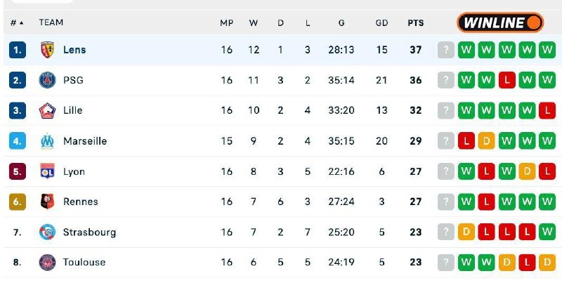 И ты удивишься, какая команда на первом месте. Это не ПСЖ, и не Монако, а скромный Ланс.