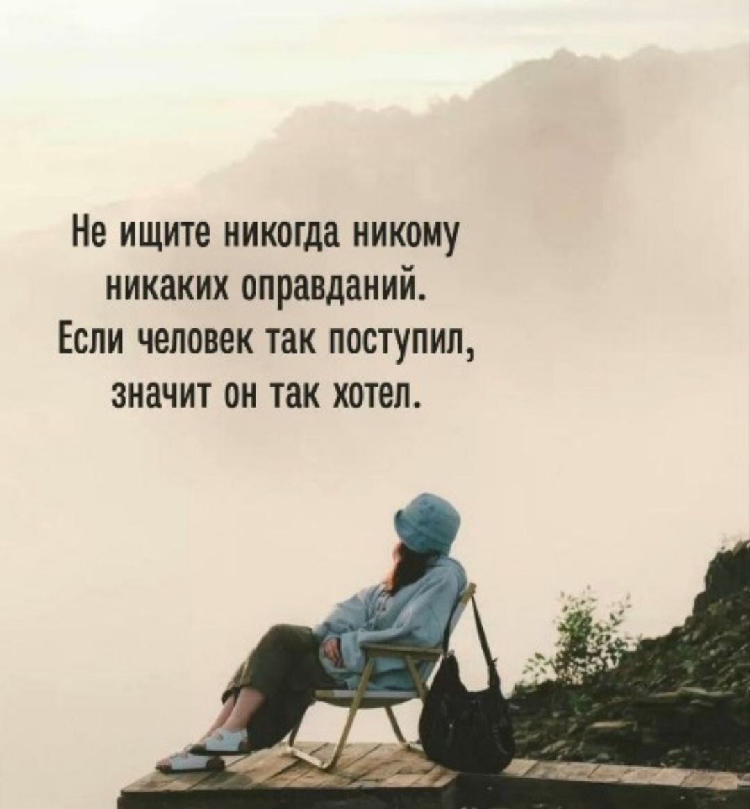 Не ищите никому оправданий – истинный смысл В жизни часто происходит так, что кто-то поступает определённым образом и мы начинаем искать объяснения и оправдания его действиям. Однако такая попытка нередко лишь затягивает процесс принятия реальности и мешает нам смотреть на ситуацию объективно. Фраза «Если человек так поступил, значит он так хотел» содержит важный урок — ответственность за выбор и действия лежит на самом человеке, а не на внешних обстоятельствах. Почему не стоит искать оправдания другим 1. Принятие реальности Любой поступок — это сознательный или подсознательный выбор. Искать оправдания бывает попыткой избежать неприятных эмоций, но не изменяет сути произошедшего. 2. Осознание мотивации Если кто-то поступил плохо или неожиданно, возможно, именно так он хотел или считал необходимым. Понимание этого помогает перестать тратить энергию на анализ «почему» и сфокусироваться на том, что делать дальше. 3. Защита от манипуляций Часто обвинения в неправильных действиях со