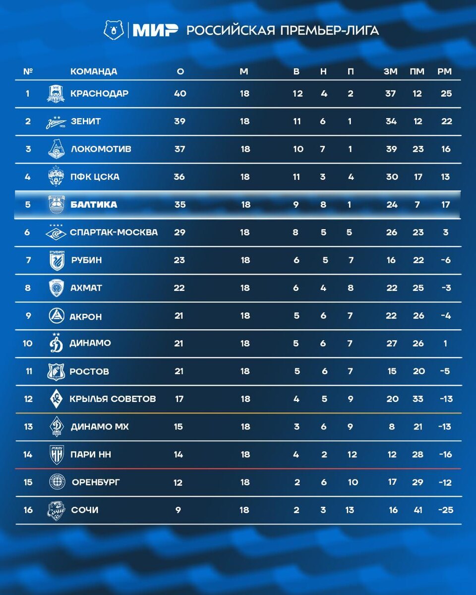 Позиции команд после осенней части чемпионата — вашему вниманию!