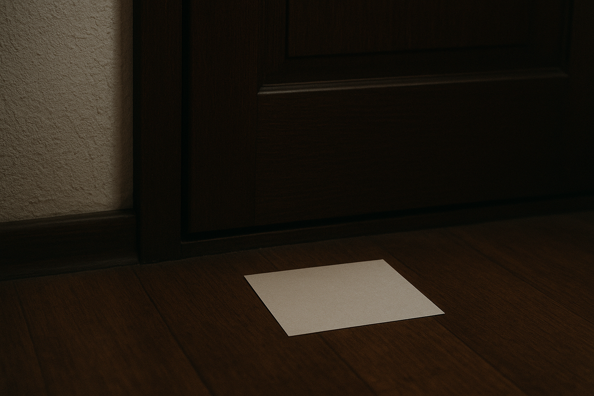 Записка лежала ровно, как будто ее аккуратно положили. Белый лист, сложенный пополам. Без логотипов, без печатей.