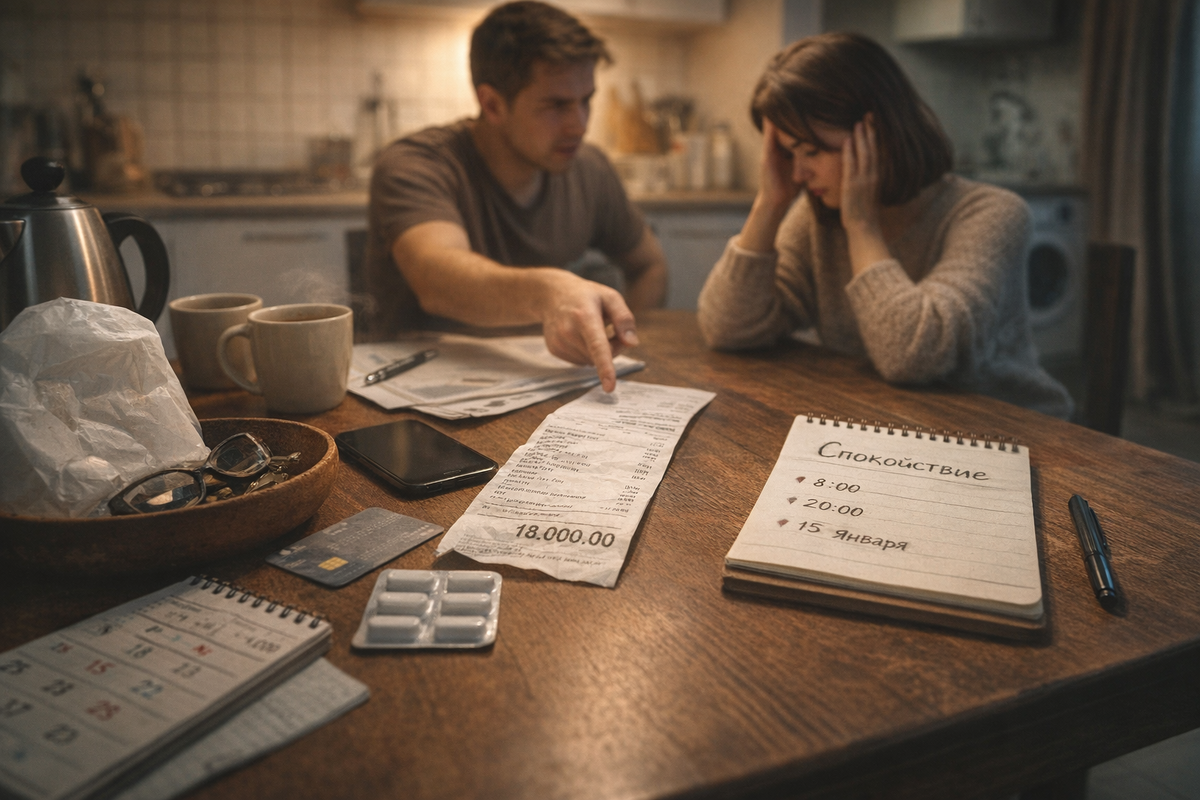 В их браке есть статьи расходов: еда, дети, коммуналка. И вдруг появилась новая: тревога. Чек на 18 тысяч превращает семейный разговор в суд с обвинениями и молчанием. Вечером вторника Лена принесла белый пакет из аптеки у метро «Парк». Дорога заняла 12 минут, снег лип к сапогам. Квитанция легла рядом с чайником, будто лишний прибор. На экране мигнуло 21:40, дети сопели за стеной, стиралка гудела в ванной. Лена открыла банковское приложение и отметила платёж: 18 000, карта общая, лимит 70 000. Зарплата придёт 25 числа, до него оставалось 9 дней. В кошельке лежала скидочная карта и рецепт. Терапевт выписал курс на 30 дней и попросил начать завтра. Аптекарь выдал памятку и предложил вести отметки в календаре. Шаги Антона прозвучали в коридоре. Чек он заметил сразу, снял очки и положил их в миску для ключей. Голос остался ровным, зато взгляд стал острым. Антон работал водителем и держал цифры в голове: ипотека 32 000, садик 9 500, газ 1 200. Смс от банка приходили на его телефон, привычка