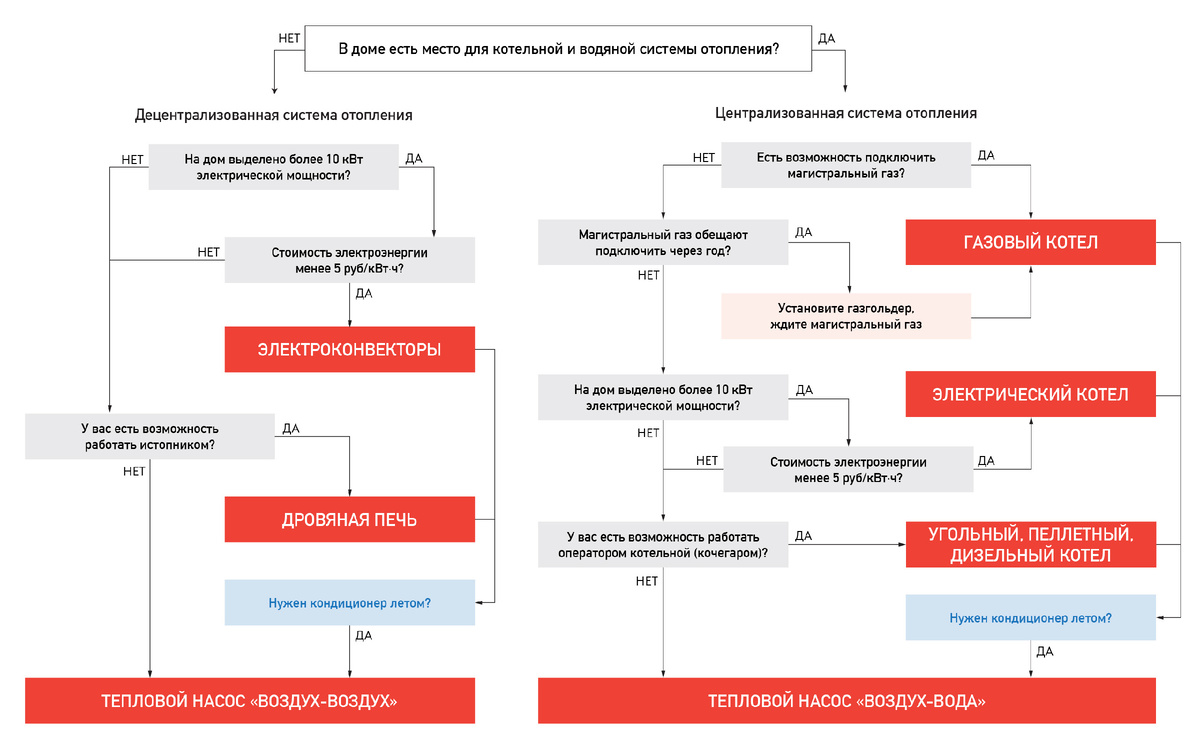 Для начала определитесь какая система отопления в вашем доме. Есть два варианта: централизованная и децентрализованная. Централизованная система отопления Централизованные системы состоят из источника тепловой энергии и инфраструктуры которая доставляет тепло потребителям (радиаторы, теплые полы). Источником тепловой энергии в такой системе может быть магистральный газ, сжиженный газ, уголь, дрова, дизель или электричество. Централизованная система отопления обычно требует отдельного помещения (котельной) для размещения оборудования, а её монтаж выполняется в несколько этапов на разных стадиях строительства дома. Такая система имеет большое количество преимуществ и подходит для дорогих капитальных домов. Децентрализованная система отопления Децентрализованной системой называется такая система, в которой источник тепловой энергии отдаёт тепло непосредственно вокруг себя. К таким устройствам можно отнести камин, печь, электроконвекторы всех типов (масляные обогреватели, инфракрасные обо