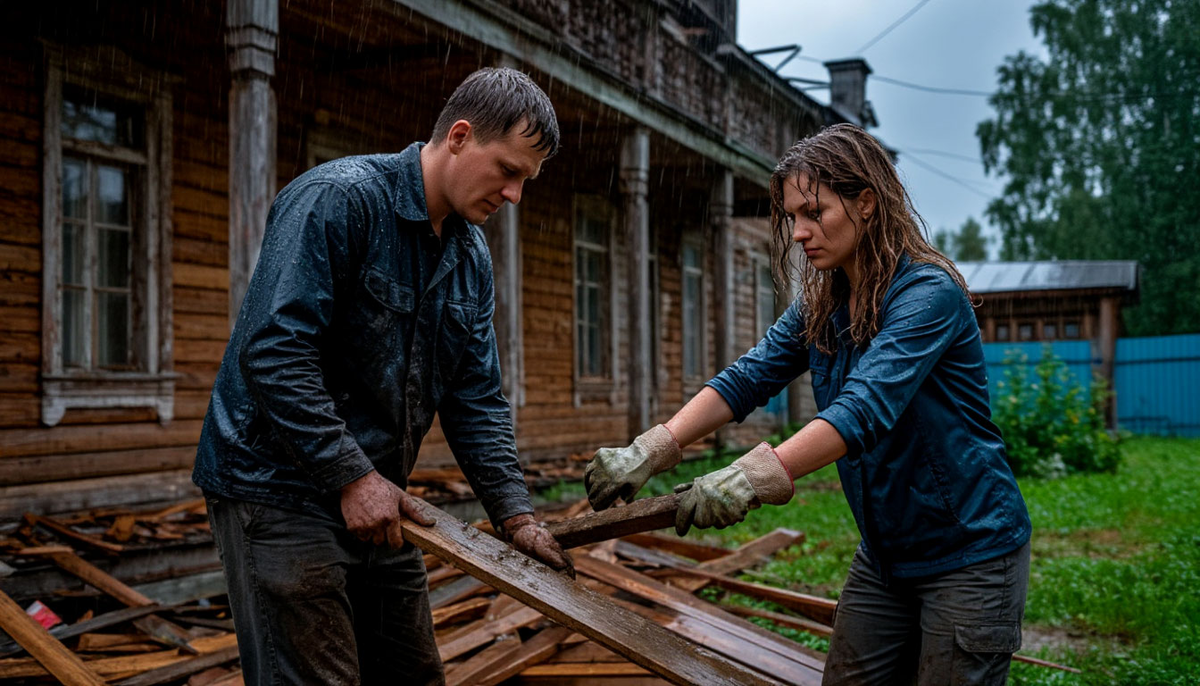 И тогда Вика совершила первый, решающий жест. Она не пошла к нему. Она отвела глаза и направилась к груде развороченной кровельной дранки. Нагнулась, взяла в руки обломок стропила, обгоревший с одного конца (видимо, от удара молнии), и попыталась сдвинуть его. Не для дела. Это был ритуал. Вопрос, заданный не словами, а телом. Вопрос на языке их общей истории: «Помнишь, как начиналось? С грязи, с мозолей, с этого чувства, когда вдвоём ты справляешься с тем, что одному не под силу».