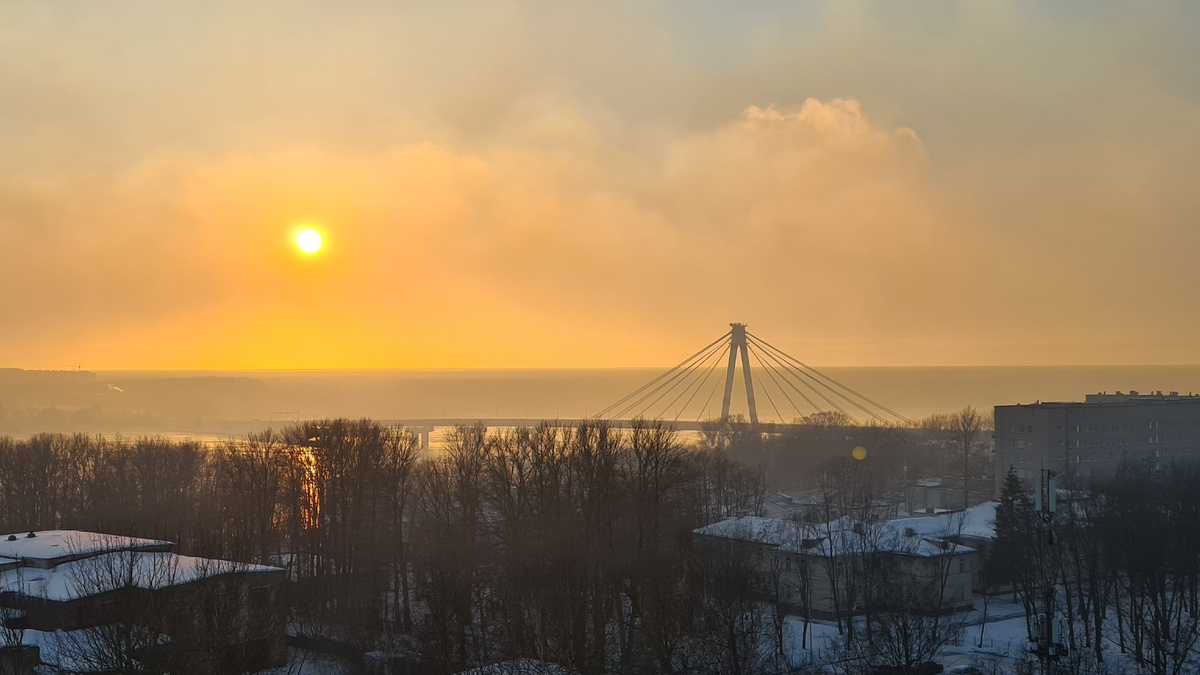 Утром 14 декабря мы с мужем ещё были в Кириллове: осматривали монастырь и посещали музеи города. Ближе к часу дня выезжаем в Череповец и через 1,5 часа заселяемся в квартиру с таким великолепным видом на Шексну и вантовый Октябрьский мост: