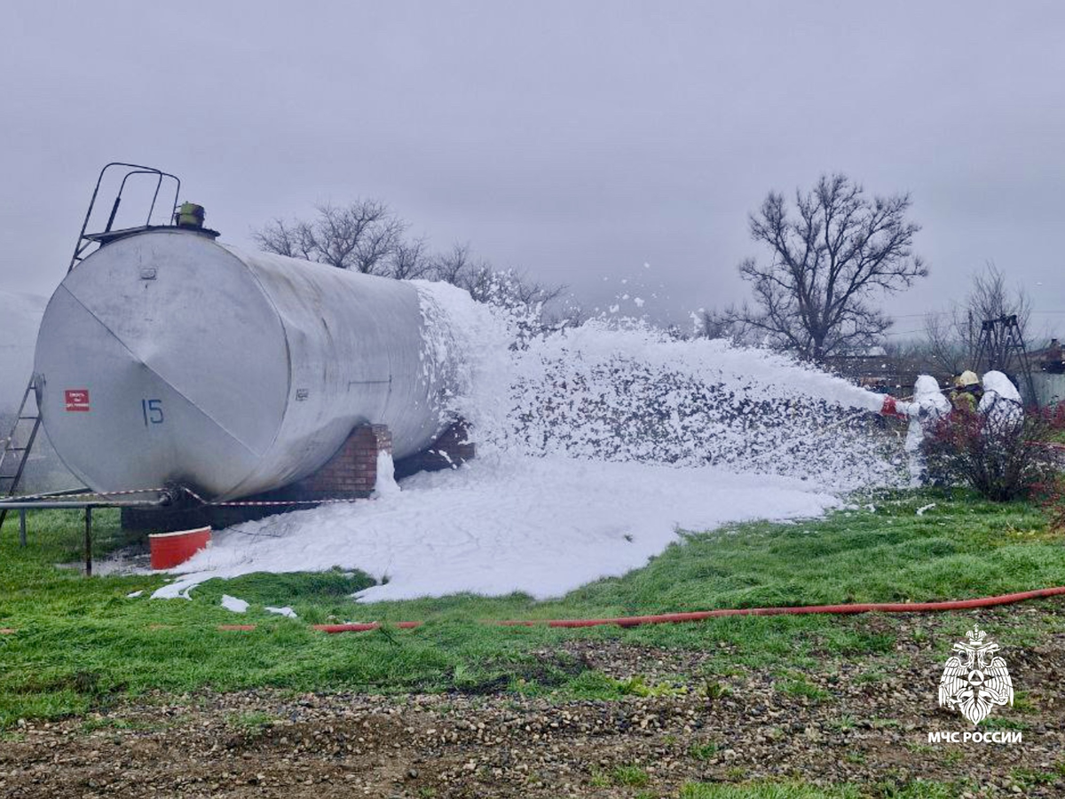 В Буденновском муниципальном округе на базе склада ГСМ прошло комплексное учение по предупреждению и ликвидации разливов нефтепродуктов. По легенде, на территории склада произошла условная авария с разгерметизацией резервуара с последующим возгоранием. Тренировка стала серьезной проверкой готовности всех экстренных служб округа к координации в критической ситуации. Получив сигнал тревоги, администрация объекта оперативно привела в действие план эвакуации, обеспечивая безопасный вывод персонала из опасной зоны. Первыми на место условной чрезвычайной ситуации прибыли расчеты 30-й пожарно-спасательной части МЧС Ставрополья. Огнеборцы провели оперативную разведку, оценили обстановку и обнаружив пострадавших, немедленно приступили к их спасению. Людей эвакуировали и передали бригаде скорой медицинской помощи. Следующей задачей стала ликвидация имитированного возгорания — для этого пожарные эффективно применили мощную установку комбинированного тушения «Пурга-5», предотвратив распростр