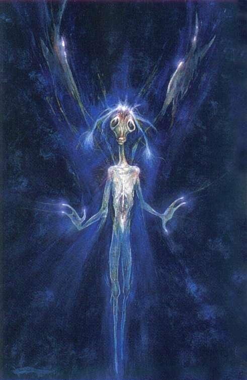 Иван открыл дверь, то что он увидел, повергло бедного парня в шок. Не касаясь земли, на уровне его груди парило существо. Оно было как-бы из черно-серой вуали. Концы одеяния острыми лоскутами списали и колыхались в воздухе. Голову, если она была, покрывало капюшон. И глаза. Большие, печальные глаза иссиня-зеленого цвета или морской волны, или закатного неба. Но очень печальные и мудрые.