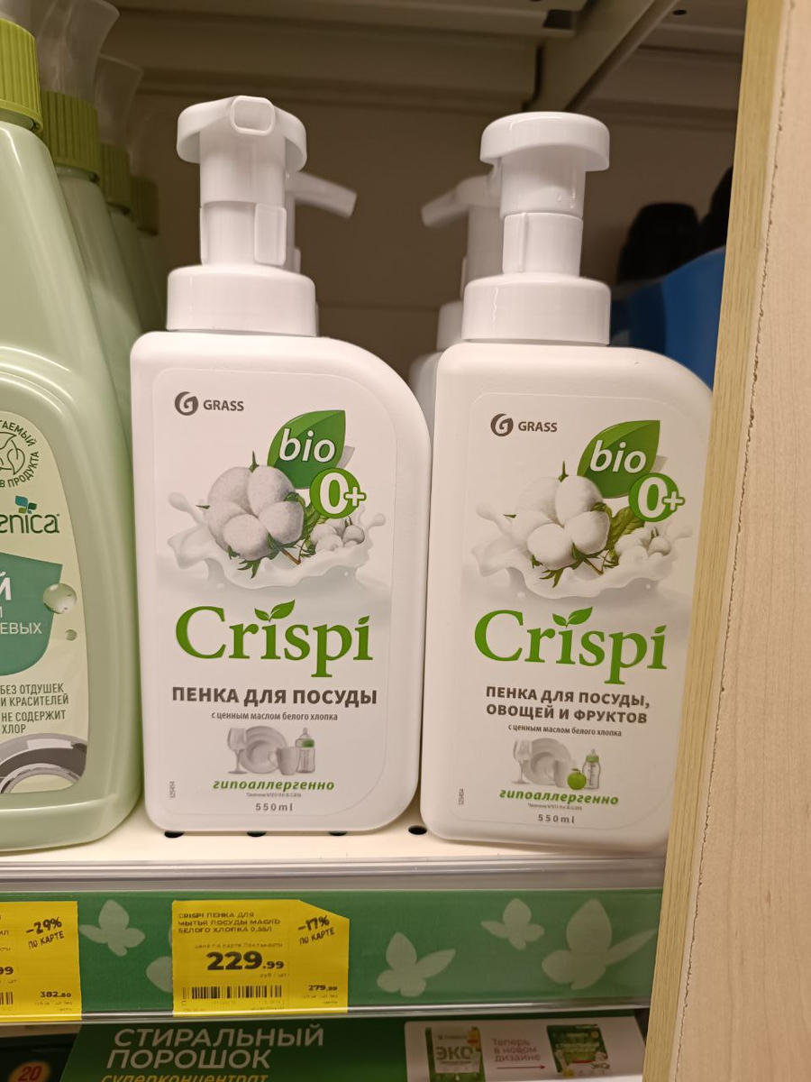 Год назад последний раз покупала в ФИКС ПРАЙС пенку для посуды от ГРАСС. этот бренд вроде до сих пор в Фиксе продается, ассортимент большой, но эту пенку больше не возят. Хотя разбирали их хорошо.