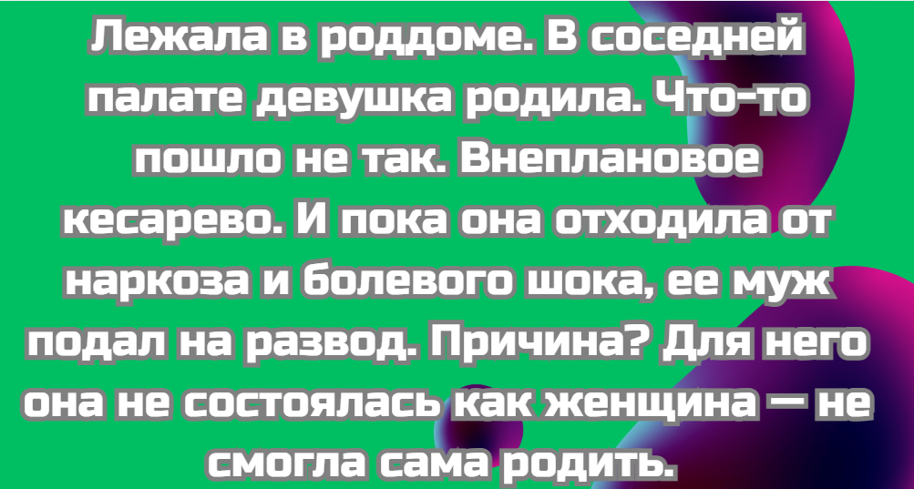 - Мы были женаты 2 года. У меня был хороший бизнес, но из-за неверного совета бухгалтера налоговая оштрафовала меня на крупную сумму. В то время мы с женой купили дом и новую машину, сбережений совсем не осталось. Я стал искать варианты с кредитом, но было непросто. В итоге позвонил в налоговую, мне одобрили выплату в течение полугода, и это спасло ситуацию. В тот день я вернулся домой, а жена, даже не поздоровавшись, выпалила: «Просто знай, если будет выбор между тобой и домом, я выберу дом». Я ушел на следующий день. © Афоня друг