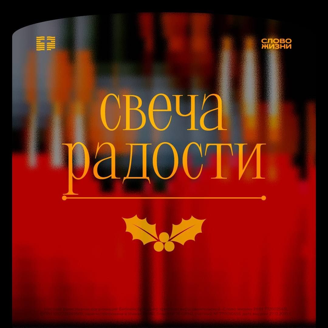 Свеча радости На этой неделе Адвента в рождественском венке горят уже три свечи. Когда мы смотрим на библейскую историю пастухов, услышавших новость о рождении Христа, то учимся любить, быть милостивыми и делать добро. Ведь нам тоже предстоит встреча со Спасителем. Ожидание праздника Рождества открывает в нашей жизни двери к добру. В это время мы можем проявлять особую заботу о нуждающихся, наполняя свои сердца и сердца других людей радостью. Адвент приходит с вестью к нам, И третья вот свеча. Исполнитесь все добротой — Изменится Земля.