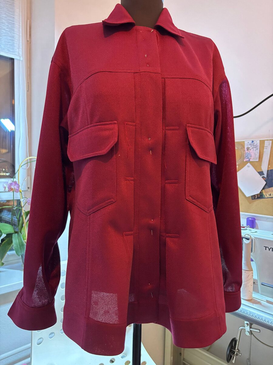 Такой вот черновой вариант без пуговиц и петель и с неотрезанными нитками. Вроде ничего сложного , но пришлось немного повозиться.