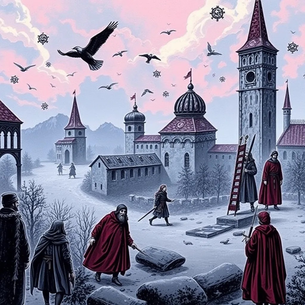 Середина XIV века. Европа, пережившая несколько столетий роста и относительной стабильности после «Великого голода» 1315-1317 годов, не подозревает, что стоит на пороге катастрофы, которая заставит забыть все прежние бедствия. Из глубин Азии, предположительно из природных очагов на территории нынешней Монголии или Китая, по Великому шёлковому пути движется невидимый враг — бактерия Yersinia pestis, возбудитель чумы. К 1346 году она опустошает низовья Волги, в 1347-м достигает Крыма, где монгольский хан Джанибек использует её как биологическое оружие, забрасывая заражённые трупы в осаждённую генуэзскую Кафу (Феодосию). Оттуда на бежавших генуэзских кораблях «чёрная гостья» прибывает в Мессину на Сицилии. Так начинается пандемия, унесшая, по разным оценкам, от 30 до 60% населения Европы — около 25 миллионов человек из 80. Это была не просто трагедия — это был тектонический сдвиг, навсегда изменивший западную цивилизацию, её экономику, социальную структуру и менталитет.