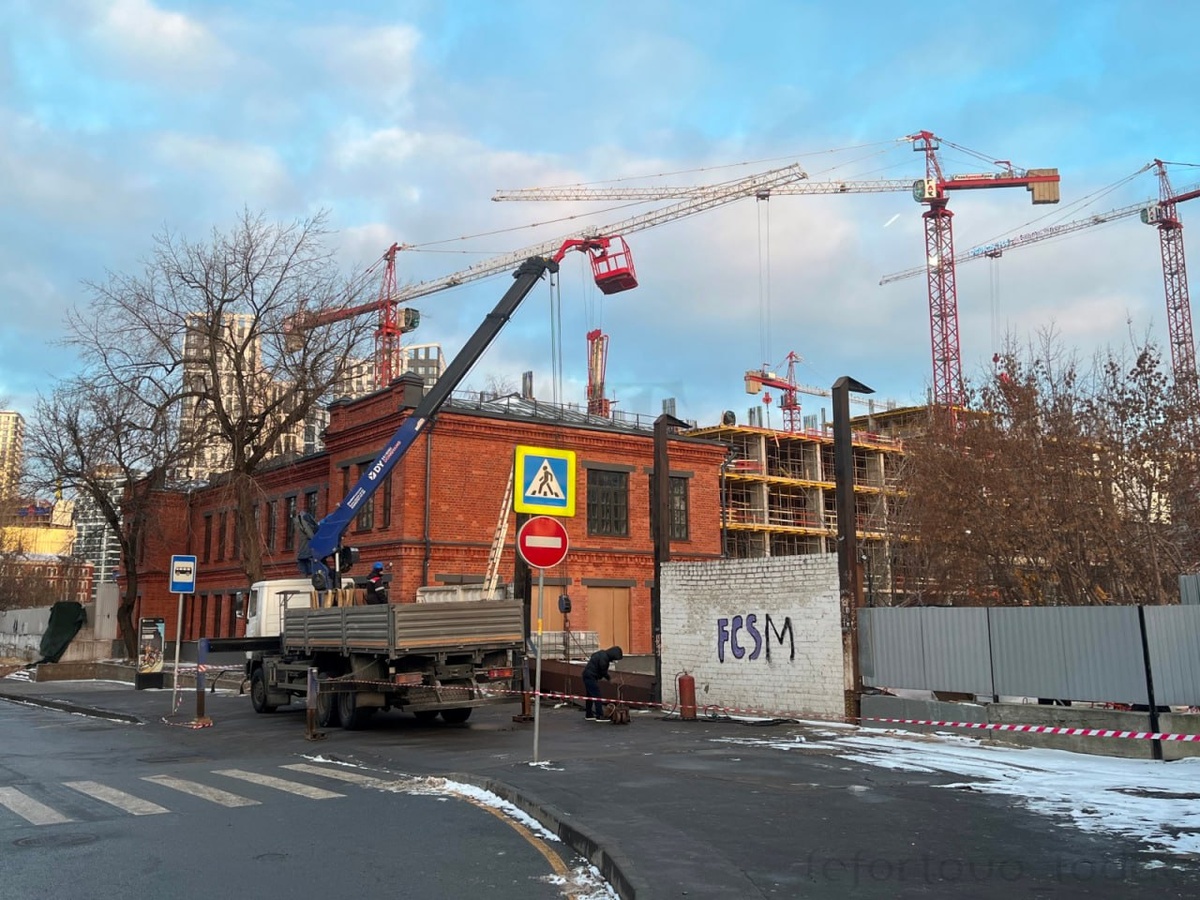 Демонтаж ворот Настало время демонтажа ворот, оставшихся со времен существования завода "Серп и Молот" возле двухэтажного кирпичного здания 1883 года. Адрес: ул. Золоторожский Вал Источник: архив lefortovo_today