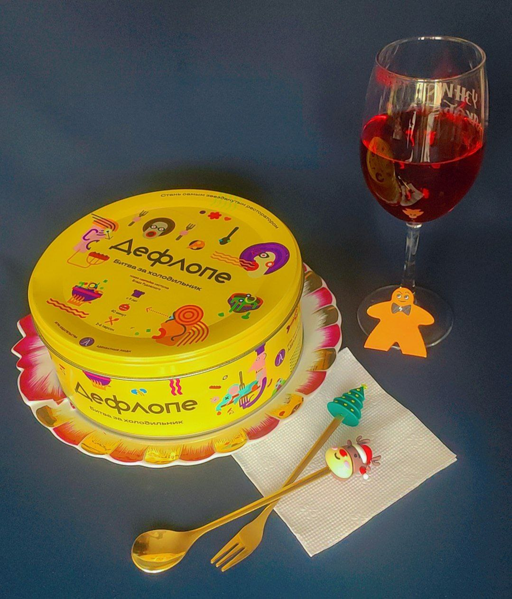 «Дефлопе. Битва за холодильник» — это карточная настольная игра с элементами ставок и динамичной гонкой за победу. Игроки становятся поварами в гротескном мире высокой кухни, пошагово собирая ингредиенты и покупая рецепты. Цель игры — первым набрать победные очки и получить Кубок кулинарного триумфа.