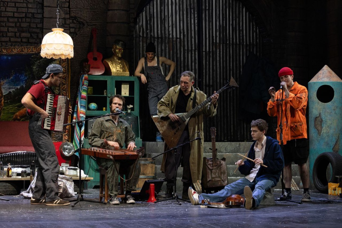 "████ НА РУСИ ████ ХОРОШО" - все, что осталось от названия одноименной поэмы Николая Алексеевича Некрасова, по мотивам которой и поставлен новый спектакль Дмитрия Мулькова в Театре имени Ермоловой. Только знака вопроса, как мне кажется, и не хватает в названии, чтоб извечный вопрос получился. Хотя по русской традиции на вопрос "Как дела?" принято отвечать "Нормально! Да все хорошо!", чем рассыпаться о своих проблемах. Вот и "сошлись семь мужиков" и ищут ответ на животрепещущий во все времена вопрос "Кому на Руси жить хорошо?" и чем можно счастье измерить: деньгами, количеством детей, широтой бизнеса или намоленной душой. Даже целый соцопрос устроили! Помещик, Чиновник, Поп, Купец, Министр поделились своим мнением. И даже удалось включить в это социальное исследование мнение Царя! Хотя зрителям он не показался на глаза и пришлось услышать его мнение из вторых уст, но всем было не трудно узнать кто скрывается за этим именем. Очень интересно был представлен образ Крестьянки. Расска