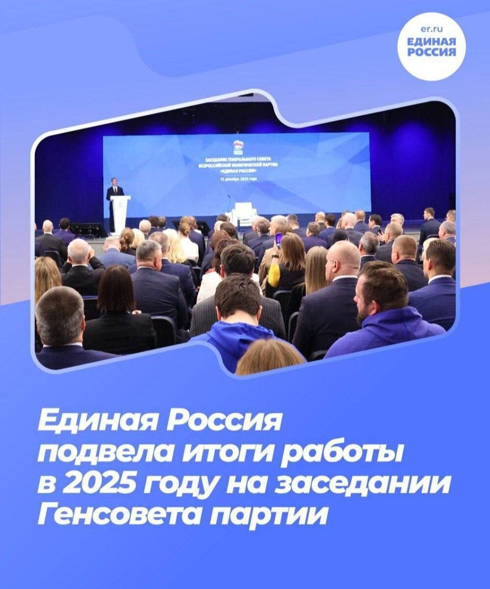 Состоялось заседание Генерального совета Единой России — главного руководящего органа партии. На нем партия подвела итоги своей работы в 2025 году, а также поделилась планами на следующий год. По итогам 2025 года по народной программе партии построено 60 новых школ, отремонтировано 54 детских сада и 749 школ, более 1300 амбулаторий, поликлиник, фапов отремонтированы и построены. В гуманитарной и волонтерских миссиях «Единой России» участвуют 8,5 тысяч человек. Они доставили уже более 145 тысяч тонн гуманитарных грузов жителям воссоединения регионов и бойцам. Поставлена четкая задача на кампанию в Госдуму: победа в одномандатных округах и улучшение результата выборов 2021 года по списку. В 2026 году партия также проведет конкурс первичных отделений, в нем примут участие все 87 тысяч первичек. #ЕдинаяРоссия #Генсовет