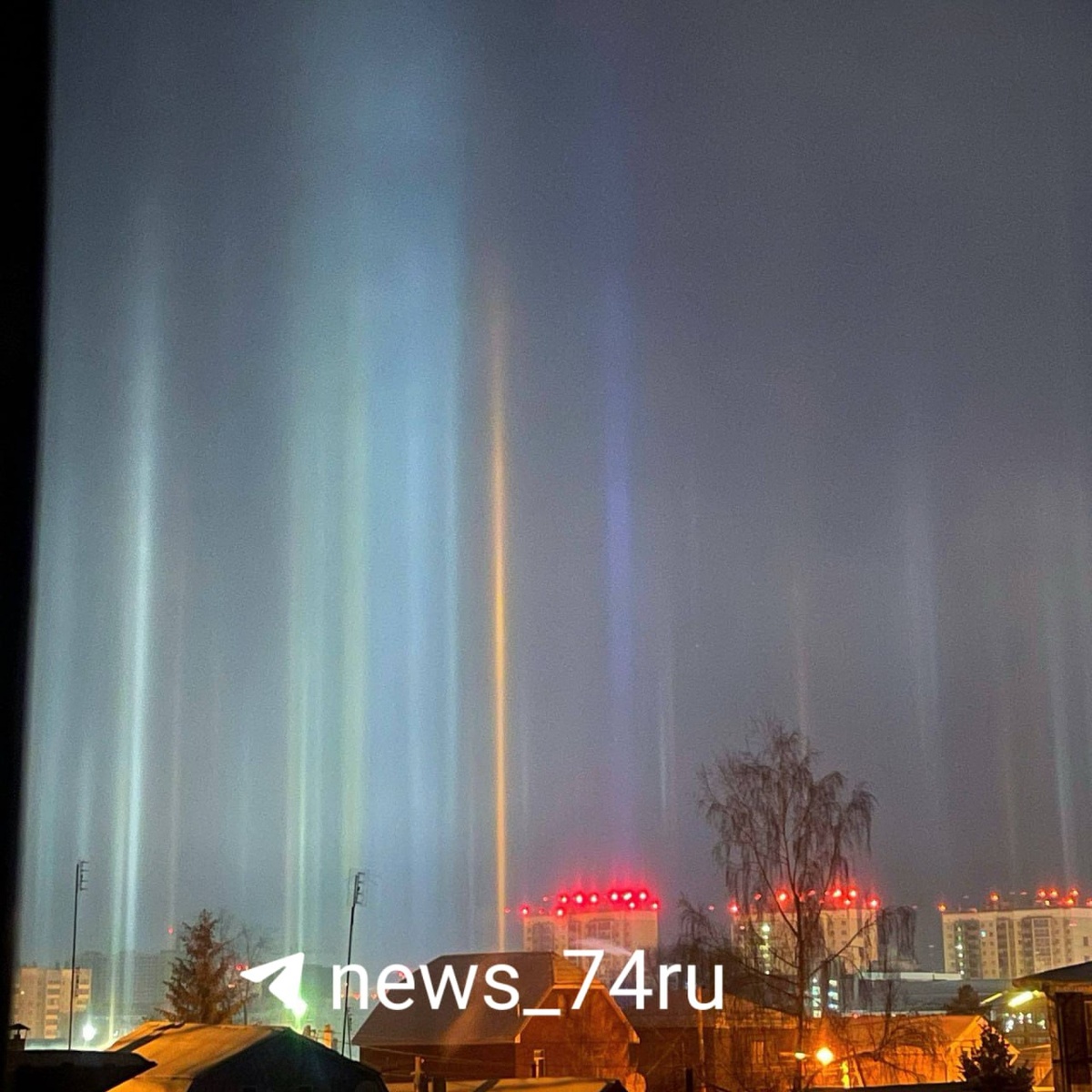 Смотрите, какую красоту сегодня сняли в Центральном районе Световые столбы появились около четырех часов утра. Такое происходит, когда маленькие части изморози начинают отражать свет — от Луны, фар автомобилей и фонарей.