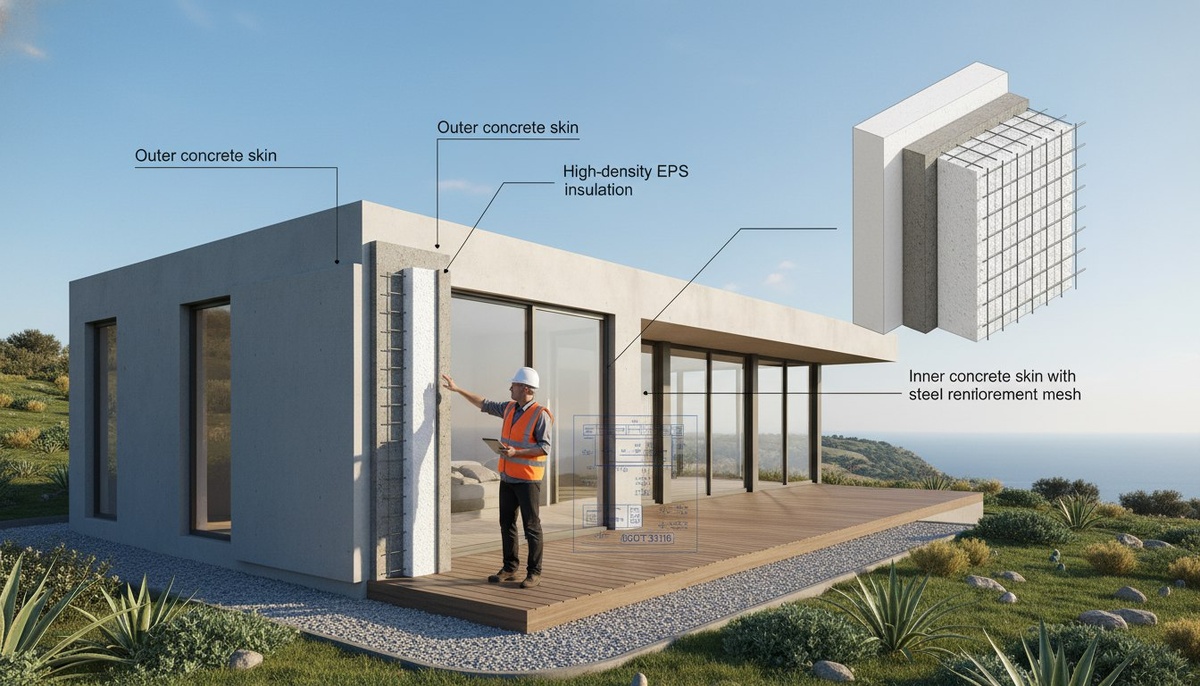 Думали, что «панельный дом» = СИП? 🧱 SCIP — совсем другая логика. Это трёхслойная ж/бетонная панель: бетон–утеплитель (чаще пенополистирол высокой плотности)–бетон с внутренним стальным армированием. Это значит: внешние слои работают как монолит, утеплитель встроен, а не навешен. По нормам — трёхслойные ЖБ панели (ГОСТ 31310) — понятные расчёты и предсказуемое поведение под нагрузками. Для частного застройщика — меньше скрытых деревянных рисков, меньше сюрпризов. Мы в Box House строим по SCIP в Крыму и Севастополе. Хотите увидеть пример расчёта для вашего участка? 🔍✅
