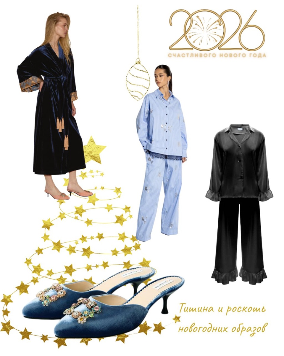 ЧЕЛЛЕНДЖ День 3 /7 Тишина, в которой слышно сердце. Пространство для себя Продолжаю🚗 Сегодня образы про состояние замедления, внутреннего комфорта, расслабления, ощущения защищенности, спокойствия, умиротворения: - шёлковая пижама, бархатное кимоно и украшенные мюли завораживают не только уютом, но и роскошью - образы с новогодними теплыми пуловерами замедляют, погружают в новогоднее настроение, мы начинаем вспоминать свои истории года и готовиться к празднику - пижамные штаны и женственные лонгсливы как будто созданы для неспешного и теплого нового года дома Собрала целых несколько образов, ух, не могу остановиться, когда столько красоты 💡 У вас какие планы, дома будете встречать Новый год? P.S.ссылки в комментариях🧸