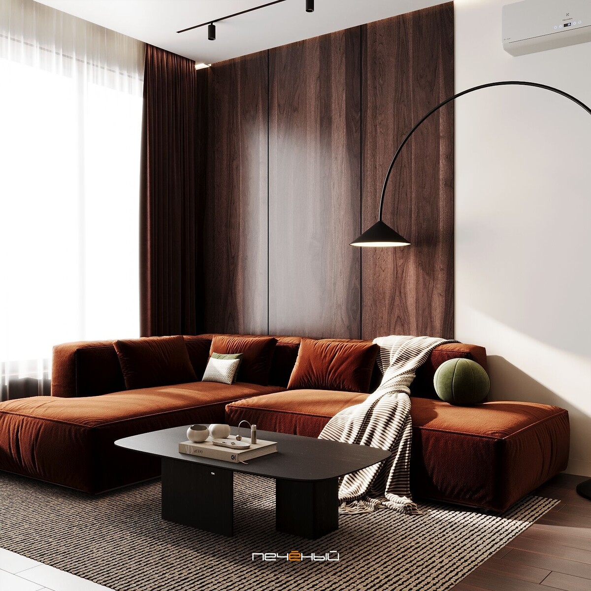 В современном интерьере мебель не должна спорить со стенами или полом. Мы выбираем диваны простых форм, компактные кресла, низкие тумбы.