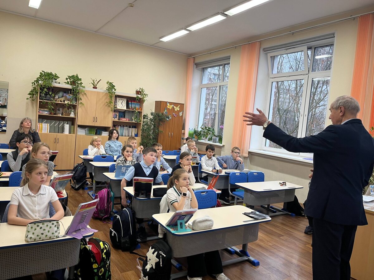 🎖 В 4 «Э» классе прошёл урок мужества, посвящённый Дню воинской славы Представители Совета ветеранов рассказали ребятам о дне начала контрнаступления советских войск под Москвой. «Очень приятно общаться с такими хорошими ребятами. Они много знают, интересуются историей и с уважением относятся к нашим общим подвигам», — отметил Юрий Степанович, председатель комиссии Совета ветеранов Строгино по патриотическому воспитанию молодежи. Также на встрече присутствовала Надежда Анатольевна Акубжанова, председатель первичной ветеранской организации Строгино. Такие мероприятия помогают детям понять историю нашей страны и воспитывают чувство патриотизма. #ДОНМ #ШколыКолледжиМосквы