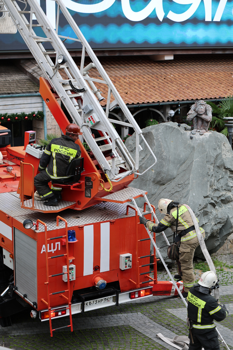 Туристические объекты полуострова готовятся к праздникам не только украшая ёлки, но и проводя тренировки для персонала и постояльцев. Так, в одном из крупных отелей в Ялте прошли пожарно-тактические учения по 4 рангу сложности. По легенде, в результате аварийной работы электрооборудования произошло возгорание в номере на седьмом этаже гостиницы с последующим горением. По находящейся в помещении мебели, сгораемым покрытиям пола и стен, огонь начал распространяться, происходит задымление здания спального корпуса. Администрация сообщила о происшествии на центральный пункт связи 2 пожарно-спасательного отряда и организовала эвакуацию персонала и посетителей отеля. Первые расчёты прибыли в установленное время и провели боевое развёртывание. Звенья газодымозащитников провели разведку и обнаружили пострадавшего, который не смог эвакуироваться самостоятельно. Его вывели на свежий воздух и передали медикам скорой помощи. Для тушения условного огня была привлечена высотная техника, 4 ствол