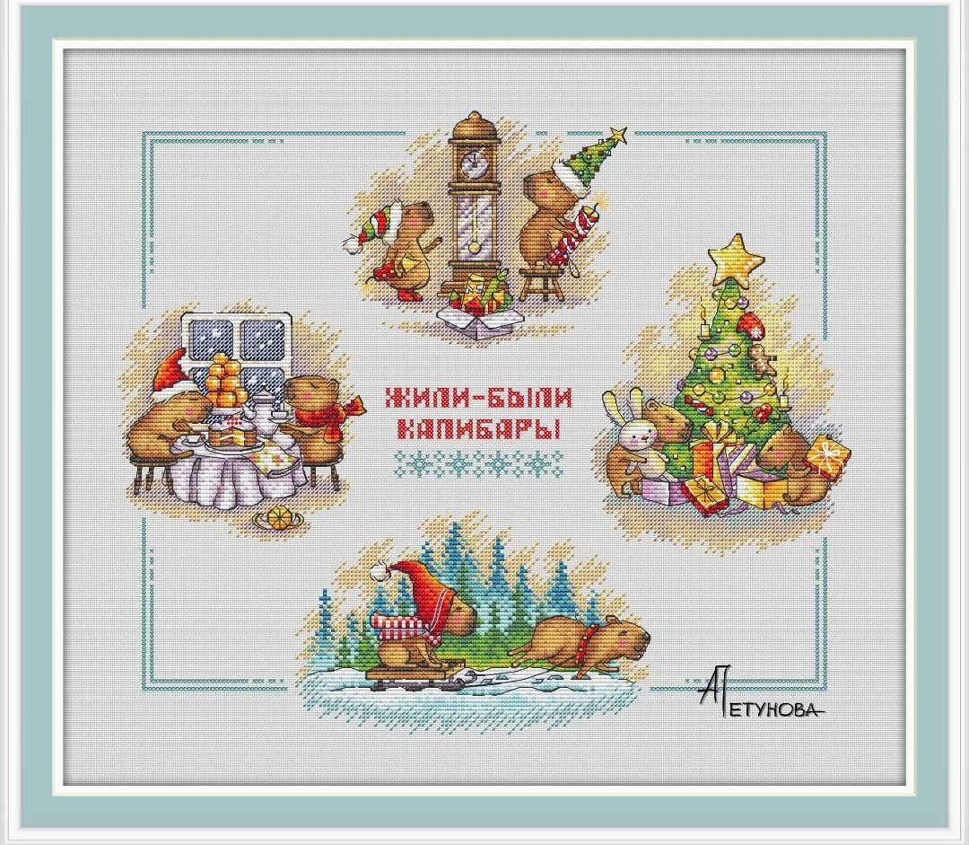 Помните, что я люблю строить планы? А еще – их выполнять. Но осень в этом вопросе оказалась абсолютно провальной. Я вообще очень мало вышивала осенью. Особенно отличился ноябрь – чуть больше 5000 крестиков! Это на фоне того, что я могу и 20 000 в месяц делать. Поэтому я долго думала: а составлять ли вообще планы на зиму? Ну не вышивается мне сейчас практически совсем… Решила, что просто обозначу направления, в сторону которых пойду. Стартовать Честно говоря – сейчас только стартовать и хочется. Поначинать целую гору всего, чтобы пяльца по всей квартире в каждом углу с новым процессом. Но здравый смысл не разрешает. Поэтому ограничусь небольшим количеством сюжетов. Серия с капибарамы от Анны Петуновой Серия новогодняя, поэтому шить ее – из разряда обязательного. Один сюжетик я уже закончила в ноябре, в декабре хочу взять с елкой, чтобы тематически получилось. Завтрак влюбленных Схема из старенького номера «Время вышивать». Не знаю, зачем она мне, но жуть как хочу ее вышить. Хоть прямо