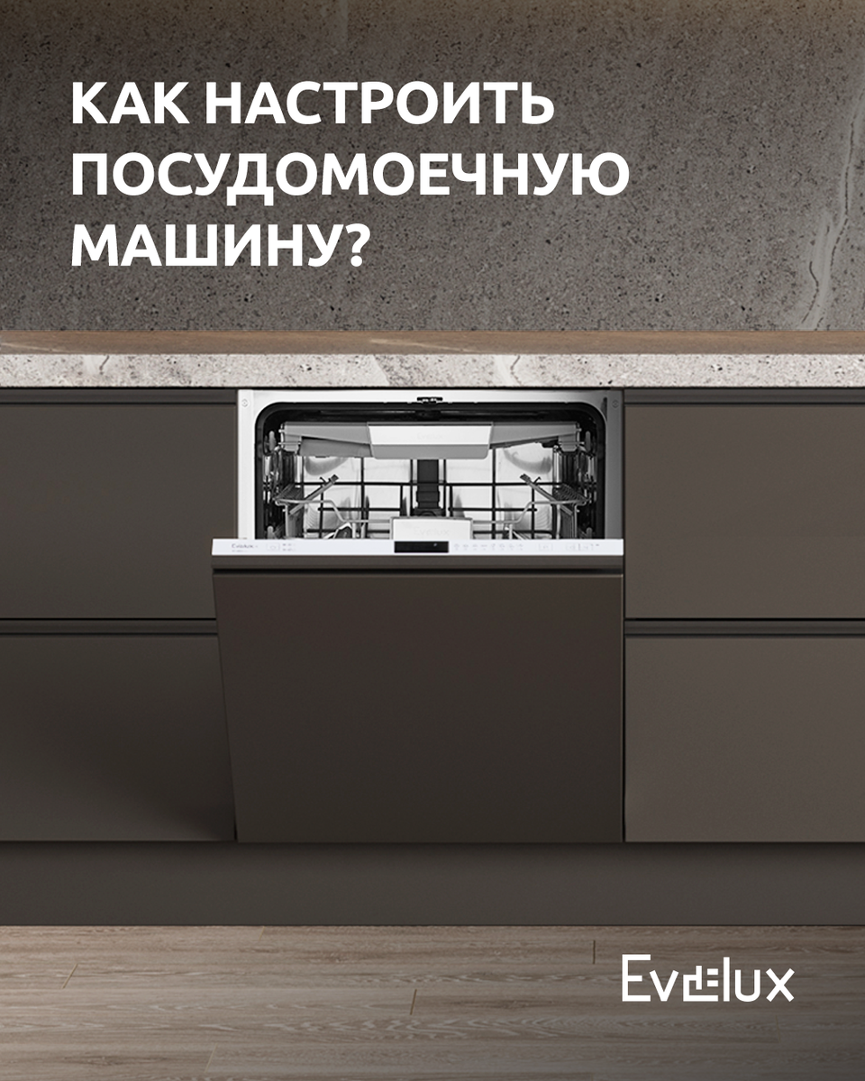 Хотите, чтобы посудомоечная машина идеально мыла посуду? Начните с правильной подготовки и проведения первого запуска. 🔸 Соль — Засыпьте около 1,5 кг соли в ионизатор для снижения жёсткости воды, залейте воду до максимума и плотно закрутите крышку. 🔸 Моющее средство — Поместите специальный порошок или таблетку в диспенсер. 🔸 Ополаскиватель — Заполните соответствующий диспенсер. Он ускоряет стекание воды и предотвращает разводы. 🔸 Пробный запуск — Запустите машину без посуды на максимальной температуре и длительности программы. 🔸 После теста — Дайте машине полностью остыть и просохнуть перед первой загрузкой. Подобрать посудомоечную машину Evelux для вашей кухни вы можете по ссылке: https://clck.ru/3QPkrH