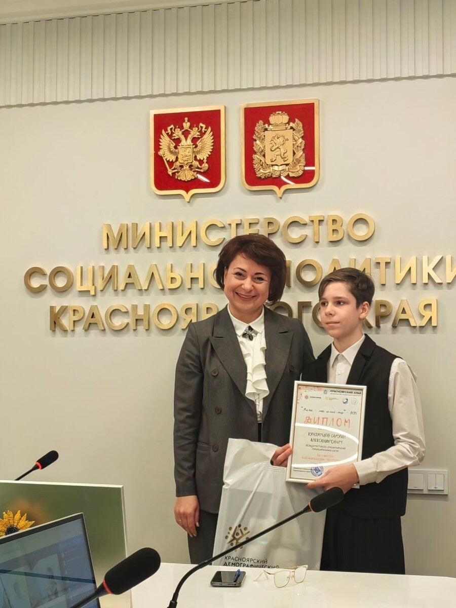 В Министерстве социальной политики торжественно наградили победителей краевого конкурса "Мама – это целый мир"! Третье место в номинации "Фотография" заняла работа Самуила Кунгурцева из сухобузимской многодетной семьи. Самуил, как и все дети Александра и Карины, обладает разными творческими способностями, например, играет на музыкальных инструментах. Пожелаем ему дальнейших творческих успехов и покорения новых вершин. Фото: Комплексный центр "Сухобузимский"