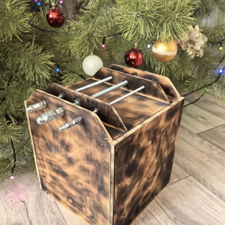Для новогоднего квеста, коллективным умом и трудом, изготовлены ящики для подарков с замком из гаек. По задумке сначала надо добыть подходящие ключи, а затем освободить подарки. P.S. Ящик изготовлен с отступлением от чертежа. Также, на главном фото, гайки не все прикручены. После праздника лень было по схеме закрывать. Уверяю, из-за наличия гаек между перемычками, даже закрыть – те ещё затраты по времени. Подписывайтесь. Ниже ссылки. Канал Дзен: https://dzen.ru/id/679c72620d120b0ce90a96c6 Группа ОК: https://ok.ru/group/70000032972818 Сообщество VK: https://vk.com/club233473197