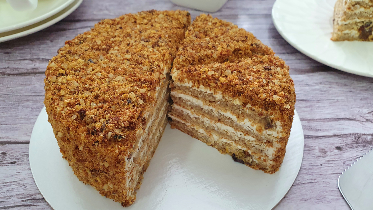 Предлагаю простой в приготовлении рецепт ПП торта, состоящий из тыквенных коржей и творожно - сливочного крема. Этот мини-торт создан для тех дней, когда хочется уюта, тепла и сладкого, но без угрызений совести. Вес торта: 550 гр Диаметр торта: 12 см КБЖУ на 100 гр: 196,80/9,23/10,01/18,36 Подсластитель - 1 грамм моего подсластителя пребиосвит фитнес = 10 гр сахара ✔️ БИСКВИТ: Яйцо С1 - 2 шт Очищенная тыква - 200 гр (или можно заменить морковью) Молоко 2,5% - 60 мл Рисовая мука - 40 гр Овсяная мука - 40 гр Изюм - 20 гр Корица - 2 гр Разрыхлитель - 5 гр Соль - щепотка Подсластитель - 4 гр ✔️ КРЕМ: Творожный сыр - 140 гр Мягкий творог 0% - 120 гр Ванилин - 1 гр Подсластитель - 3 г ✔️ Грецкие орехи - 15 гр для обсыпки по желанию ПРОЦЕСС ПРИГОТОВЛЕНИЯ: Приготовим бисквит. Изюм залить горячей водой на 15 минут. Воду слить, обсушить бумажным полотенцем. Если изюм крупный, то лучше его разрезать пополам ножом. ❗Изюм можно вообще не добавлять, он необязательный ингредиент. Тыкву очистит