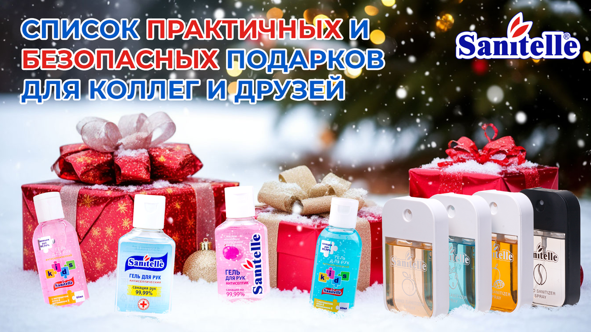 • компактному формату У Sanitelle есть готовый бокс с ароматными антисептиками на любой вкус - набор можно красиво упаковать в крафт-пакет. Практичные варианты: • варежки