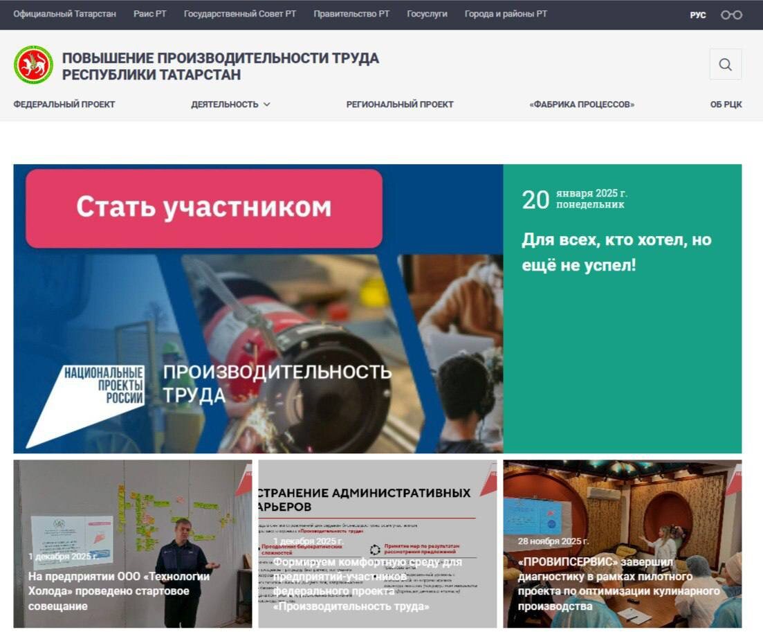Портал, посвященный повышению производительности труда в репсублике Татарстан
