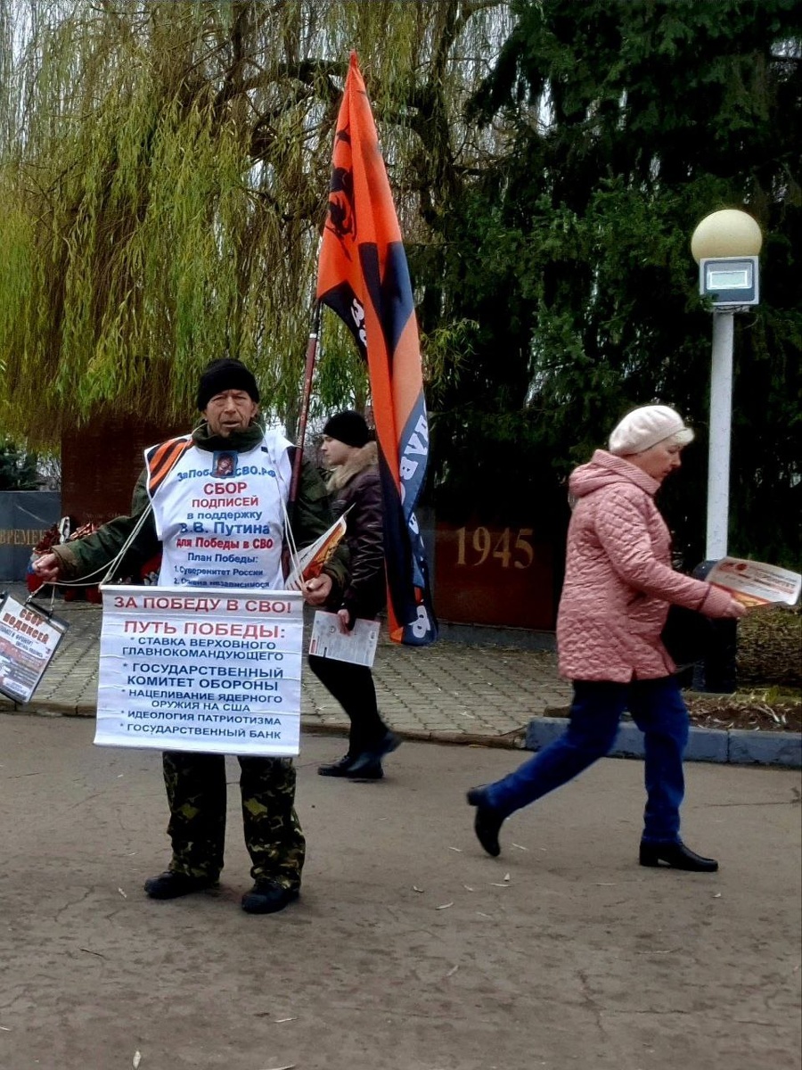 В городе Мичуринск 3 декабря проведён одиночный пикет в поддержку курса Владимира Путина на суверенитет «Большая группа старшеклассников проходила мимо пикетчика. Преподователь разъяснения не поняла, бланк не подписала, но газеты для информации взяли», — рассказал пикетчик. Для возвращения суверенитета, потерянного в 1991 году, необходима консолидация общества, поддержка народом национального Лидера ПутинаВ.В. За время пикетирования было роздано 50 номеров газеты НК. За возвращение Отечества в границах 1945 года, проведение судебного расследования и отмены через Верховный суд РФ незаконной независимости Украины, к иску просоединились 8 человек. За Победу в СВО и наделение полномочиями Путина В.В. коллективное обращение подписали 10 человек. Горбсуд.рф ЗаПобедувСВО.рф