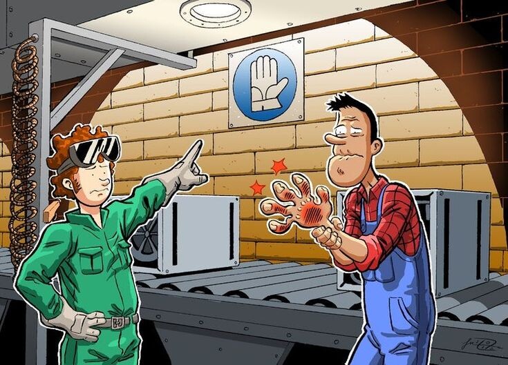 Знак говорит “надень перчатки”, а он услышал “проверь температуру руками”... #охранатруда #юмор