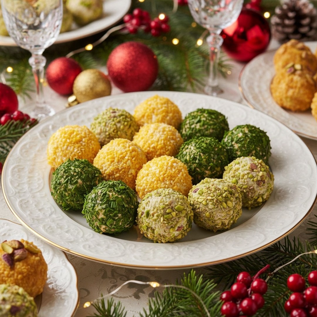 Закуска «Ёлочные шарики» Ингредиенты ⤵️ 🔸 Крабовые палочки — 200 г 🔸 Сыр — 150 г 🔸 Яйцо — 3 шт. 🔸 Чеснок — 2 зубчика 🔸 Фисташки — 100 г 🔸 Укроп — 1 пучок 🔸 Майонез — 3 ст.л. 🔸 Розмарин — 1 веточка 🔸 Красная икра — 50 г Приготовление🎄 1. Яйца отварить, очистить. Белки и желтки отдельно натереть на тёрке. 2. Крабовые палочки и сыр натереть на мелкой тёрке. Чеснок пропустить через пресс. 3. Смешать все ингредиенты (кроме желтков и орехов) с майонезом, слегка посолить. 4. Орехи измельчить в крошку. 5. Формировать шарики, обваливая: в желтке («золотые шары»), в орехах («пушистые шары»), в зелени («ёлочные игрушки») 6. Украсить икрой, воткнуть веточки розмарина как подвески. 7. Выложить на блюдо с «снегом» из тёртого сыра или кокосовой стружки. Рецепт дня #закуска #елочные_шарики #крабовые_палочки #сыр #яйцо #новогодняя_закуска #праздничный_стол