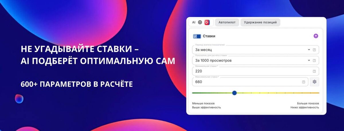 🎯 Почему нельзя выбирать «стоимость за заказ» вслепую Многие селлеры ставят одинаковую цену за заказ, не учитывая главное – цену товара. Из-за этого ДРР разлетается, а реклама перестаёт быть прибыльной. Смотрите, как это работает: • Товар стоит 1000 ₽, За заказ 200 ₽ → ДРР = 20% • Товар стоит 2000 ₽, За заказ 200 ₽ → ДРР = 10% • Товар стоит 200 ₽, За заказ 200 ₽ → ДРР = 100% (полный минус) Одна и та же стоимость За заказ → три полностью разных результата. Именно поэтому выбирать «стоимость за заказ» просто «по ощущениям» – опасно. 📊 Где посмотреть реальные данные В статистике рекламной кампании видно: • средний чек покупателей • среднюю эффективность среди поставщиков • своё фактическое ДРР • сегменты, где вы переплачиваете или недоплачиваете Эти данные помогают понять, в какой группе вы находитесь и откуда появляется минус. 🤖 Но есть способ не считать всё вручную Просто включите AI MP Manager. Он учитывает 600+ параметров, прежде чем выбрать оптимальную ставку: ✔️ цену тов