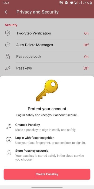 В Telegram станет возможным вход с использованием Passkey — ключей доступа, которые хранятся на устройствах пользователей