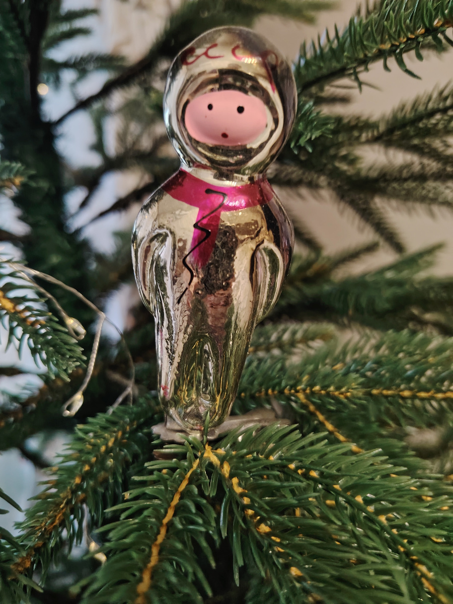 Елочная игрушка космонавт, выпущенная ко дню космонавтики, 60- е. годы. Домик с заснеженной крышей,думаю,что это игрушка старше меня, помню её на ёлке в моем детстве. Фонарь, прожектор и агитация. Хочу вам показать свою коллекцию ёлочных игрушек советского периода. Каждый год, когда я украшаю квартиру к Новому году, всегда наряжаю Ёлку. У меня очень много ёлочных игрушек, и современных, их я покупаю к каждому новому году, просто не могу удержаться от покупок,и игрушек советского периода. Каждый раз, когда я наряжаю Ёлку, планирую, что у крашу её в современном стиле, в одной тематике или хотя бы в одной цветовой гамме, но как только открываю ларец с игрушками, не могу удержаться и вешаю на Ёлку все подряд, получается у меня елка украшенная в стиле Щелкунчика. Таких ларцов с игрушками у меня целых три штуки! Два весёлых гуся, игрушки на прищепках. Маленький мук, игрушка на прищепке. В детстве у меня было очень много игрушек на прищепках, конечно не все они сохранили