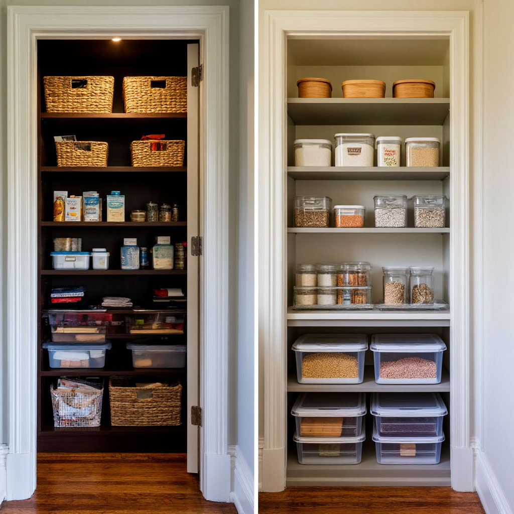 продуктового бюджета! Шаг 1: Жесткая ревизия или "Расхламление под девизом: Если не ел год — выбросить!" Я вынесла из шкафа ВСЁ. Оказалось, там жили: 3 пачки просроченной гречки (2021 год, Карл!) Запасные банки для консервации (у меня нет дачи) 5 упаковок макарон разных сортов в полуоткрытых пачках Мой принцип: Если продукт не имеет четкого назначения и срока годности дольше 6 месяцев — ему не место в малогабаритной кладовой. Итог: Освободила 60% пространства! Выбросила хлам на 1500 рублей, но это были уже не продукты, а музей экспонатов. Шаг 2: Вертикаль — наше всё! Система хранения от пола до потока В маленькой квар