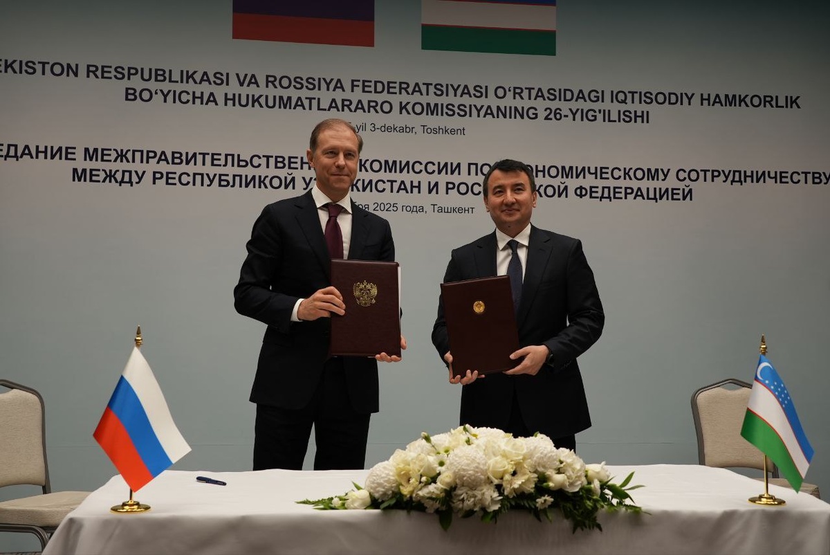 В Ташкенте состоялось 26-е заседание межправительственной российско-узбекской комиссии по экономическому сотрудничеству. По его итогам был подписан ряд документов. Подписи под протоколом заседания и дорожной картой поставили сопредседатели комиссии – первый зампред правительства России Денис Мантуров и зампремьер-министра Узбекистана Жамшид Ходжаев. Также стороны подписали: план мероприятий по торгово-экономическому сотрудничеству Узбекистана и Башкортостана на 2025–2026 годы; меморандум о взаимопонимании между корпорацией "МСП" и агентством по развитию легкой промышленности Узбекистана. По данным торгового представительства России, с Узбекистаном сотрудничают около 80 субъектов РФ, наибольшую активность проявляют Татарстан, Челябинская область и Москва.