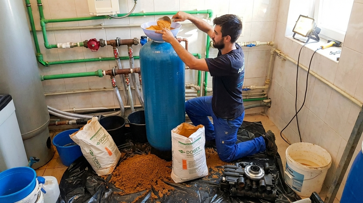 Если установить систему очистки воды и забыть о ней на несколько лет, то ее эффективность придет к нулю. Более того, то, что накопилось внутри фильтра в какой-то момент начнет выходить наружу в огромных концентрациях. Поэтому замена загрузки фильтра — это не прихоть сервисных компаний, а необходимость, от которой зависит качество воды и срок службы всей системы. Почему загрузка фильтра теряет эффективность Фильтрующий материал работает как губка: он впитывает и задерживает примеси из воды. Со временем поры забиваются частицами железа, солей жёсткости и других загрязнений. Даже регулярные промывки и регенерации не возвращают материалу первоначальные свойства — часть загрязнений остаётся внутри навсегда. Кроме накопления примесей, происходит механический износ. При каждой промывке гранулы загрузки трутся друг о друга и постепенно истираются. Например, катиониты КУ-2-8 теряют около 10% массы ежегодно просто из-за трения. Через 4–8 лет материала становится настолько мало, что он переста