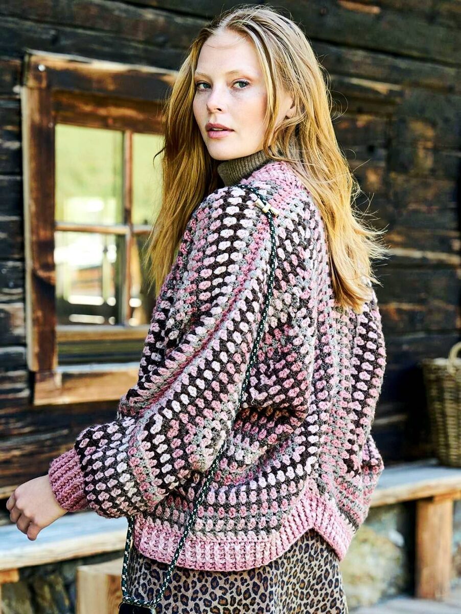 № 1: Розово-коричневый жакет из шестиугольных мотивов с отделкой рельефной резинкой ♥