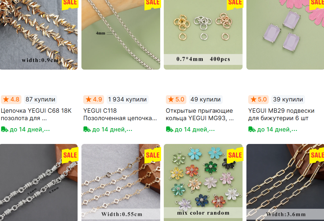 Знаю, что меня смотрят много мастеров - начинающих и не очень. Хотела поделиться магазином, где есть все комплектующие для того, чтобы сделать украшение "ювелирного" типа: блестящее покрытие, сверкание фианитов и прочая... От колечек разных диаметров и толщины, пинов, коннекторов и цепей до уже готовых подвесок из камней с накрученной петелькой, чтобы оставалось только подвесить... и красивых соединителей из граненых кабошонов натуральных камней. Это не совсем моё, но иногда хочется сделать прям таки ювелирное изделие, не прилагая почти никаких усилий (только деньги🤪). Я оставлю ссылки на основные детали, а Вы побродите по магазину, наверняка что-нибудь еще заинтересует. Колечки (разных размеров и толщины): https://ali.click/m970sj?erid=2SDnje5Kq1R Швензы (крючки для серег): https://ali.click/zd70sw?erid=2SDnjesHSk7 Цепи: https://ali.click/pq70sw?erid=2SDnjde8NhV Замки-карабины: https://ali.click/0v70su?erid=2SDnjeFi5Tm Пины: https://ali.click/s180sn?erid=2SDnjevFknj Коннекторы с нат
