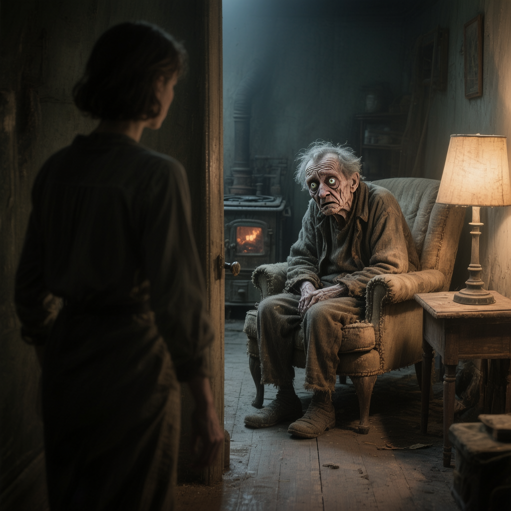 Эви замерла на пороге. Её сердце бешено колотилось, но в голове была ледяная, сверхъестественная ясность. Она двадцать лет строила образ в своей голове: высокий, сильный, с улыбкой, которая не сходила с лица. Перед ней сидел старик. Нет, не просто старик. Разрушенный человек. Плечи ссутулены под невидимой тяжестью, лицо изрыто морщинами, как руслами высохших рек, редкие седые волосы. Но глаза… глаза были её. Такие же серо-зелёные, изменчивые. И в них стоял такой ужас, такая бездонная вина и такая мольба, что у Эви перехватило дыхание.