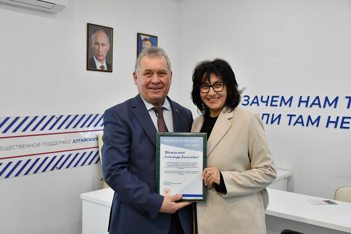 Она приурочена к 24-летию «Единой России» и проходит с 1 по 10 декабря Секретарь регионального отделения «Единой России» и председатель Алтайского краевого Законодательного Собрания Александр Романенко 2 декабря провел прием граждан в штабе общественной поддержки партии. С пенсионером из барнаульского поселка Южный он обсудил сразу три вопроса: индексацию пенсий, тарифы на отопление и электроснабжение. Директор некоммерческой организации «Лавка добра» Инна Алексеева поблагодарила Александра Романенко за помощь регионального отделения «Единой России» в проведении театрализованного представления для глухих детей и взрослых, посвященного 80-летию Победы в Великой Отечественной войне и специальной военной операции. Особенные зрители увидели его 7 мая в актовом зале Алтайского госуниверситета. «На языке жестов мы рассказали о подвигах защитников Родины разных времен. На сцену поднялись участники СВО. Общение с ними важно для патриотического воспитания наших детей», - рассказала Инна Алексе