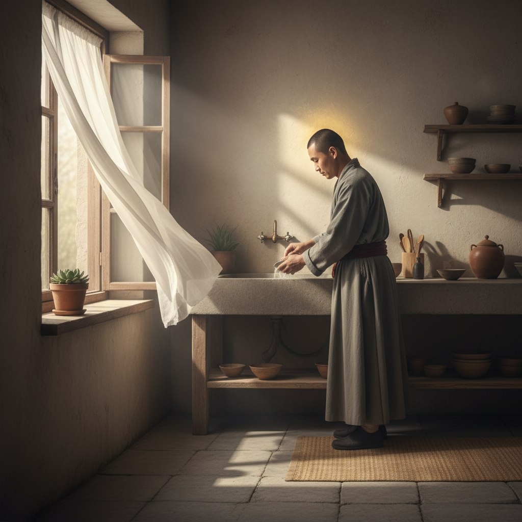 Почему грязная посуда крадёт наш мозг? Ученик пришёл к мастеру и спросил: "Учитель, почему важно мыть посуду сразу после еды?" Тишина окутала зал. Словно время приостановилось, и звуки мира замерли у порога. Мастер произнес, не открыв глаз: "Пропустив дождь, старая лодка увязнет в воде, став её частью. Так и тарелка входит в объятия времени, когда её не освобождают." Ученик замер, ощущая, как слова мастера проникают глубже, чем ответ. Сказанное оставило его в раздумье — об уме и обязанностях, о природе медлительности. Пауза заполнила пространство. Тишина взяла своё. Ученик кивнул, растворяясь в безмолвной мудрости, которой не нужны объяснения. Заложенные в сердце мастера слова остались там эхом, оставляя лишнее, открывая внутренний мир ученика.